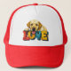 Show off your puppy love with this fun graphic print hat! The retro-inspired illustration features a beautiful yellow Labrador Retriever resting on block letters spelling LOVE. Ideal for messy hair days and long walks with your best friend. Woof | This design is available on multiple hat styles. Choose a trucker, dad, snapback, or bucket hat from the Product Style menu above.