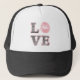 Características deste design um grupo pastel de lábios e de AMOR em um teste padrão listrado preto e branco.