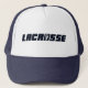 Lacrosse. Mostre seu orgulho em ser um jogador e/ou um fã do esporte o mais rápido em dois pés. Design de texto corajoso do lacrosse da palavra com a silhueta da cabeça da vara dentro do O.