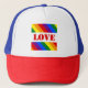 Bandeira do arco-íris quadrado LGBTQ+ com o Love Trucker Hat - LGBTQ+ Rainbow Flag Stripes para o Mês do Orgulho - é um Design humano feito, repetindo perfeitamente Stripes Rainbow Flag para Celebrações do Orgulho. As cores nesta bandeira são vermelho, laranja, amarelo, verde, azul, violeta.