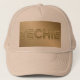 Este é um Dourado Chapéu Techie Khaki Luxe. A palavra Techie está na frente do chapéu em Dourado texto luxo sobre fundo de ouro luxo. Você poderia dar este chapéu como presente a um Programador de Computador. Este chapéu pode ser um presente para o Dia da Tecnologia no dia 3 de outubro. O Dia da Tecnologia é um feriado para pessoas que trabalham em computadores. Você pode alterar a imagem com o botão Personalizar.