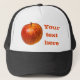 Maçã vermelha sobre fundo transparente. A maçã tem muitos símbolos, mas guardemos os símbolos do amor, da vida e da saúde. Boné Trucker. Você pode alterar ou excluir a imagem e o texto do modelo.