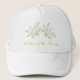 Esta adorável mãe floral amarela do chapéu do noivo brilha com a alegria da celebração. É decorado com dois narcisos brancos. O texto pode ser personalizado para se adequar à sua ocasião individual. Perfeito para o janto de ensaio, brunch ou bachelorette.