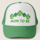 O design afortunado do Dia de São Patrício do trevo de quatro folhas para que a mamã grávida seja vem em um chapéu verde e branco do camionista que você possa personalizado com um nome em vez do anúncio de maternidade se você quer.