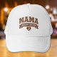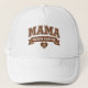 This hat is great for Moms who need caffeine first, before they carry out other tasks for the day. The word "MAMA" is printed in large, "collegiate" style outline text in a coffee brown color, with a brown banner that says "NEEDS COFFEE." Underneath, there's a heart with a coffee bean in it. This humorous hat might make people smile, or maybe they'll give you a cup of coffee.
