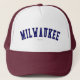 Verifique para fora este chapéu de Milwaukee! É você de Milwaukee, Wisconsin? Você tem um amigo ou um membro da família que amem Milwaukee, Wisconsin? Em caso afirmativo, este chapéu da "bandeira" é exatamente o presente que você está procurando! As características de design "Milwaukee" na rotulação arqueada do marinho na pia batismal clássica da faculdade.