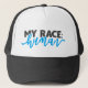 Design da justiça social que celebra inclusão e diversidade. Afinal, somos HUMANOS. Apresenta "My Race:" no texto da cinza de carvão com "human" em uma escrita azul brilhante e moderna.