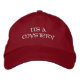 Uma diversão misteriosa cita boné bordado de baseball vermelho e branco. O texto É Um Mistério pode ser personalizado se preferir. Uma ideia divertida de presente de aniversário.