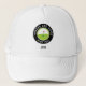 GREENS ARE GOOD FORE YOU! This bold trucker hat features curved white text encircling a red flag on stylized golf greens—all set against a solid black background. A modern monogram template allows for three white initials, with additional space for a name or custom text, making it a standout gift for tournaments, birthdays, or weekend warriors. Whether you're teeing off with flair or gifting your favorite golfer, this hat delivers shade, style, and a wink of personality.