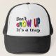 Não cresça, é uma ilustração de armadilha com letras coloridas