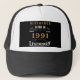 Um camionista personalizado / chapéu de basebol para aquele nascer de aniversariante em 1991 e fazendo 30 anos. Adicione o nome a este design preto, branco e ouro de estilo retrógrado vintage para um presente de aniversário de 30 anos. Edite facilmente o nome e o ano com o modelo fornecido. Um maravilhoso presente de aniversário preto. Mais presentes e material para a festa de 30 disponível no design "Legendário" da loja.