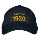 Nascer em 1920 ou qualquer ano 90 de aniversário V07 MARINHO BLUE Hat DOURADO Embroidery com aniversário STARS Fun que você pode personalizar com um sentimento, nome e ano. Todo o texto é personalizável, pelo que também é adequado para um 90 91 92 93 94 95 96 97 98 99 ou para qualquer outro ano de que necessite. Você também pode mudar a cor do chapéu, o estilo do chapéu ou a cor do thread para uma aparência diferente.