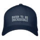 Bonés bordados de beisebol divertidos e humorísticos com as palavras "Nascer para ser incrível" em um ponto azul claro em um boné de pico de cor khaki. PERSONALIZAR TI ~ Escolha o estilo e a cor do seu chapéu; altere o texto; altere a cor / tamanho e estilo da fonte do estilo ocidental para torná - la exclusiva.