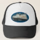 Titanic Sea Blue White Star Line Ship Hat. Personalize para criar o vestuário Titanic exclusivo. Substitua seu Monograma por "RMS", que significa Royal Mail Ship. Nome próprio ou Nome da família, pode ser substituído por Titanic. Este design está disponível em quatro padrões de cores: Azul marítimo, azul médio com um contorno azul marinho, Limão marítimo, azul médio com um contorno do limão, Azul marinho, azul escuro com um contorno azul marinho e azul escuro do Limão marinho com um contorno do limão. Visite as Coleções Marítimas e Marítimas de Vestuário do Titanic para mais ideias divertidas. Este design apresenta minha pintura original de óleo, copyright 2/1995.