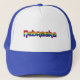Trucker Hat with text sign "Nebraska" in colors colors of the LGBT (lesbian, gay, bisexual, and transgender people) rainbow pride flag, rainbow love gay American state pride lgbtqiap+ design