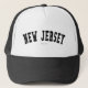 Verifique para fora este chapéu de New-jersey! É você de New-jersey? Você tem um amigo ou um membro da família que amem New-jersey? Em caso afirmativo, este chapéu da "bandeira" é exatamente o presente que você está procurando! As características de design "New-jersey" na rotulação preta arqueada na pia batismal clássica da faculdade.