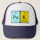 Puk soletrado como Pu K (Potássio de Plutônio) em um chapéu para o cientista em você.