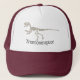 Personalize seu nome de Dinossauro neste chapéu com um esqueleto de Velociraptor. Clique em "Personalizar" e edite a primeira parte do texto com um nome. Altere a cor do nome clicando em "editar usando a ferramenta design"
