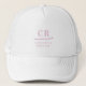 Exiba seu estilo pessoal no campo com este Boné Trucker Minimalista Feminino Rosa e Branco Monograma. Com duas iniciais e um primeiro e último nome separados por uma barra decorativa, este design limpo combina uma tipografia rosa bonita com um fundo branco crocante para um visual fresco e moderno.