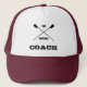 Slogan humorístico "inspirador de admiração" para um remador ou escultor. Personalize seu chapéu com um nome ou outro texto. O exemplo mostrado seria um presente excelente de "obrigado você" para um treinador. A legenda está em letras maiúsculas, com lâminas cruzadas, em preto.