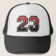 Distintivo 23º Chapéu Desportivo da Festa de aniversário com número vermelho e preto 23
