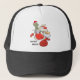 O papai noel bonito do vôo com um jacaré/crocodilo que veste um chapéu do papai noel que senta-se no papai noel que retem uma lista longa em seu texto customizável das mãos… lê do "o ajudante papai noel". Personalize a cor do fundo.