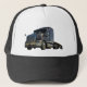Reboque de tractor de Peterbuilt no chapéu preto do camionista.