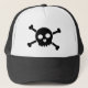 Um crânio preto e crossbones em um estilo cartoony em um chapéu do camionista. Variação inclinada.