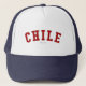 Verifique para fora este chapéu do Chile! É você do Chile? Você tem um amigo ou um membro da família que amem o Chile? Em caso afirmativo, este chapéu da "bandeira" é exatamente o presente que você está procurando! As características de design o "Chile" na rotulação vermelha arqueada na pia batismal clássica da faculdade.