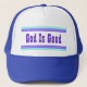 O deus é bom fraseio cristão com listras em um chapéu. Personalize e adicione suas próprias palavras, ou mude a pia batismal e a cor da pia batismal.