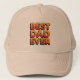Este é o melhor Pai de sempre. Este beige que apresenta o Melhor Pai Nunca em letras cor de laranja retrorreflectoras. As letras são letras retrô grossas. As letras têm um gradiente laranja. O chapéu é uma cor de areia.