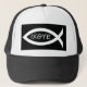 Nos círculos cristãos, o símbolo do peixe é muitas vezes usado para simbolizar o Cristo de Salvador Jesus. A língua dominante da Igreja primitiva era o grego, e em grego a frase "Jesus Cristo, Filho de Deus, Salvador" produziu a sigla ICHTHYS, a palavra grega para peixes. Um poema cristão do segundo século soletra a palavra com as primeiras letras de cada linha. Vista este chapéu para testemunhar da sua firme crença em Jesus Cristo, Filho de Deus, Salvador. O chapéu tem um peixe branco sobre fundo preto com a sigla IXOYE dentro. Em dias bíblicos, pureza branca significava, uma cor adequada para nosso Deus.