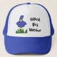 Um chapéu de excelente para um pai ou avô, tio, etc. que adora ver pássaros... um pássaro azul engraçado com grandes penas e um grande bico amarelo. Lâminas de grama verde debaixo dele. O ditado "observador oficial de aves" pode ser alterado como desejado.