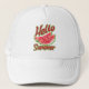 Este design vibrante e refrescante é perfeito para acolher a estação de verão. Ele apresenta duas suculentas fatias de aquarela pintadas à mão, de melancia, completadas com um belo gradiente de vermelho e rosa, uma crosta verde e sementes escuras. As palavras "Hello Summer" são exibidas com ousadia acima e abaixo da melancia em uma fonte divertida e texturizada. Esta design é ideal para quem ama vibrações tropicais, frutas suculentas e os ensolarados dias do verão.