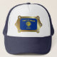 A design impressa neste chapéu contém a bandeira do Orégão cercada por uma armação metálica.