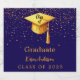 Classe de 2025. Para uma celebração moderna e moderna de graduação. Um fundo azul com confete de ouro. Personalize e adicione um nome e ano. Decorado com um abstrato moderno boné de ouro falso, tassel topper. Para ele e para ela.