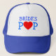 Hora do ensaio de casamento? Boné azul e branco para o pai da noiva vestir para designar seu status especial durante o ensaio de casamento...e depois, também. Um coração de amor vermelho substitui o "O" em "POP".