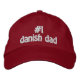 pai dinamarquês nº 1! Mostre seu orgulho dinamarquês com este chapéu bordado personalizado! A bandeira nacional da Dinamarca, Dannebrog, é vermelha com uma cruz escandinava branca que se estende até às bordas da bandeira.