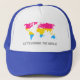 Trucker hat with pansexuality rainbow stripes map of world, pansexuality pride flag design by pinkbrickroad