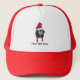 Saia para as férias de Natal com este chapéu de cachorro divertido. Em destaque está uma pintura de um cachorro branco e preto giro, vestindo um chapéu de Papai Noel vermelho e branco e um arco vermelho. Há também um espaço reservado para você digitar facilmente seu próprio texto personalizado.