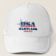 Chapéu de caminhoneiro de Maryland. Um design de tipografia ousado com uma estrela azul que destaca o estado de Maryland, seu ano de estadual em 1788, e as iniciais dos EUA se infundiram com as estrelas e listras da bandeira americana. Faz um presente patriótico ou lembrança maravilhosa.