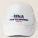 Chapéu de camionista New Hampshire. Um design de tipografia ousado com uma estrela azul que destaca o estado dos EUA de New Hampshire, seu ano de estado em 1788, e as iniciais dos EUA se infundiram com estrelas e listras da bandeira americana. Faz um presente patriótico ou lembrança maravilhosa.