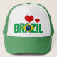 O Adorável Bandeira do Brasil Corta o Chapéu Patriótico dos Caminhoneiros com a inscrição "Brasil" exibida na frente do chapéu. A inscrição é feita com o padrão e as cores da bandeira nacional brasileira. Dois corações vermelhos, um grande e um pequeno acabam o design. Corações totalmente personalizáveis ou removíveis usando o recurso "Personalizar!". Base que cor complementa muito bem o design. Este chapéu delicioso é um presente encantador e único. © PaísesDoMundo