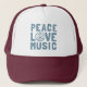 Comece com o nosso "Peace Love Music" Trucker Hat, o melhor chapéu para expressar uma mensagem eterno enquanto a mantém legal e casual. Perfeito para os festivais, amantes da música, ou qualquer pessoa que viva pelo ritmo da paz e do amor, este chapéu combina conforto com uma afirmação. Com a sua malha enrolada para trás e design arrojada, é um acessório essencial para dias ensolarados, concertos ao ar livre, e todos os dias no meio.