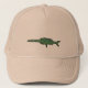 Um peixe-serra verde engraçado sorri deste legal chapéu.