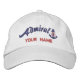 A dynamic personalized Admiral cap in nautical red, white, and blue style embroidered hat sure to make an impression on, or off the boat. Make this lifesaver anchor design embroidery as unique as you are with your name, your location, or your boat's name.
