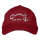 A dynamic personalized Commodore cap in nautical red and white style embroidered hat sure to make an impression on, or off the boat. Make this nautical star anchor design embroidery as unique as you are with your name, your location, or your boat's name.