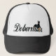 Um Pinscher do Doberman que descansa sobre o texto retro "Doberman" da pia batismal - design original para proprietários do Pinscher do Doberman e todos os amantes deste cão produzem!