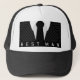 © Sunny Mars Designs - Pinstripe Suit: Black and Cinza Best Man's Trucker Hat - Personalizado da festa de solteiro de solteiro ou melhor chapéu de homem ou boné com um traje de pinta preto e cinza, camisa branca e gravata de pescoço preto. Presente perfeito para o seu melhor homem, padrinho de casamento, contínuor, portador de anéis ou qualquer macho na sua festa de casamento.