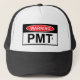 Os bonés de beisebol do sinal de aviso de PMT para mulheres terminam com a silhueta de suspensão engraçada, assustador do homem para advertir outro de seu PMT e de seus balanços de humor associados de PMT, ha ha! Homens do susto em uma camisa do sinal de aviso T de PMT este outono!
